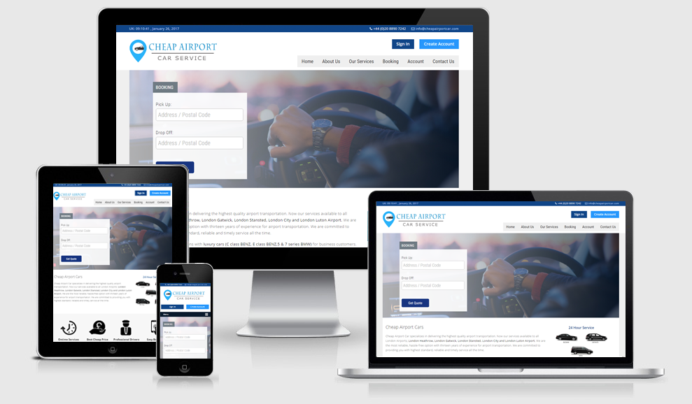 Website with location based dynamic price calculator: developed for Cheap Airport Car, an airport car service provider located in London, UK. This site contains online reservation, customer account panel, online payment portal and admin panel with advanced features.