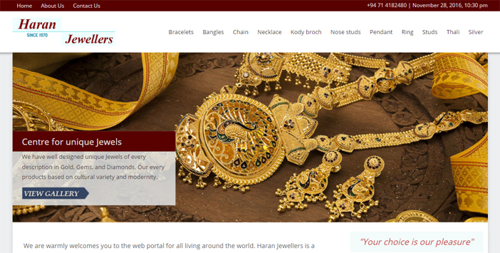 Make a good looking online presence is an important step to be a leading Jewellery. Haran Jewellers is a preferred choice of jewelers for every occasion since 1970. In their website, you can view and select designs with its unique ID and contact them by it.